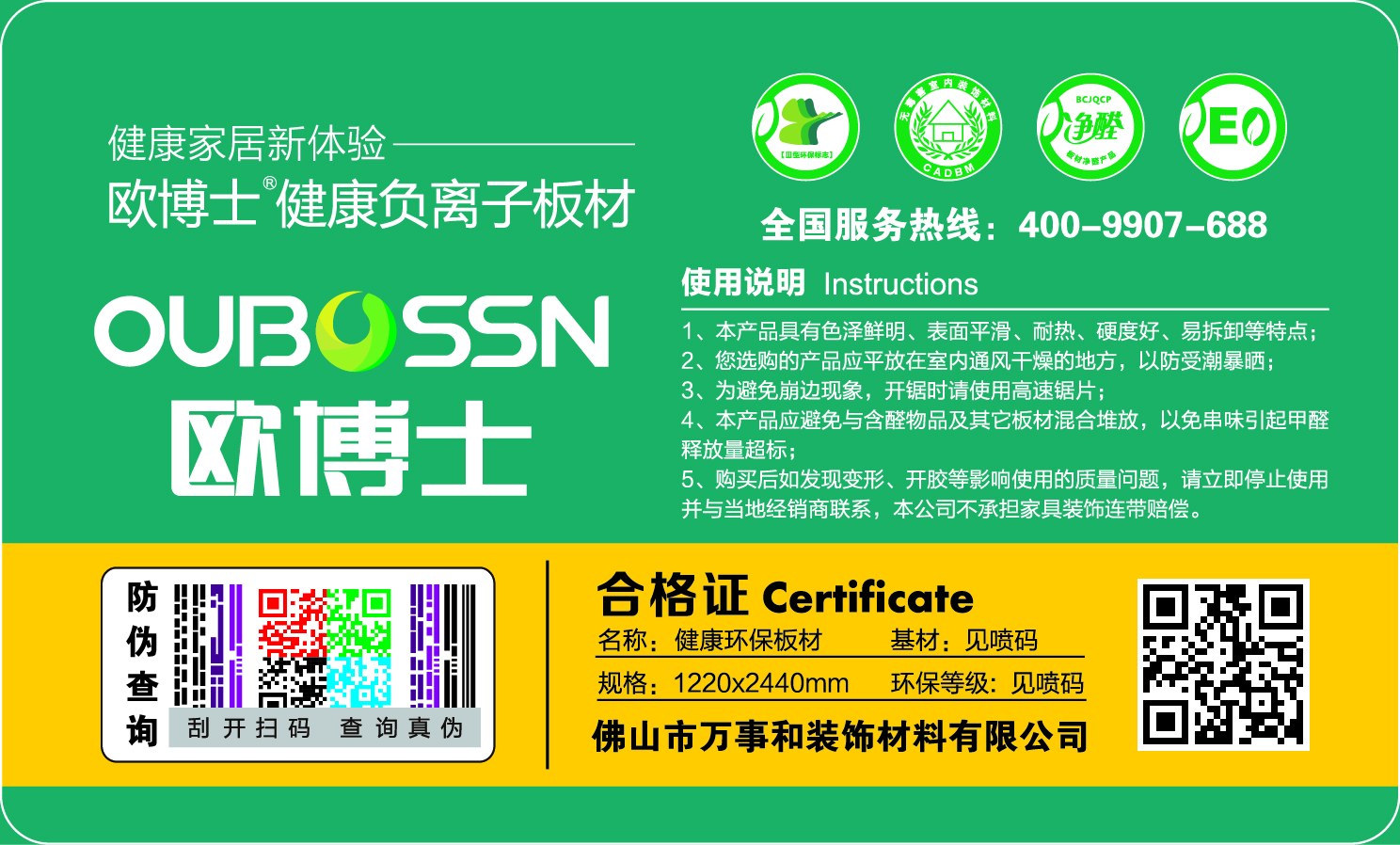 歐博士歷來重視板材的市場規(guī)范工作,公司本著"質(zhì)量為本,誠信經(jīng)營,服務(wù)用戶"的經(jīng)營宗旨,區(qū)分假冒偽劣產(chǎn)品,提高消費者利益。